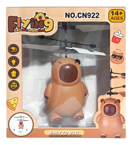 Sus hélices se activan y el Capibara Volador cobra vida, elevándose suavemente mientras llena el aire de color con sus luces LED brillantes.🤩